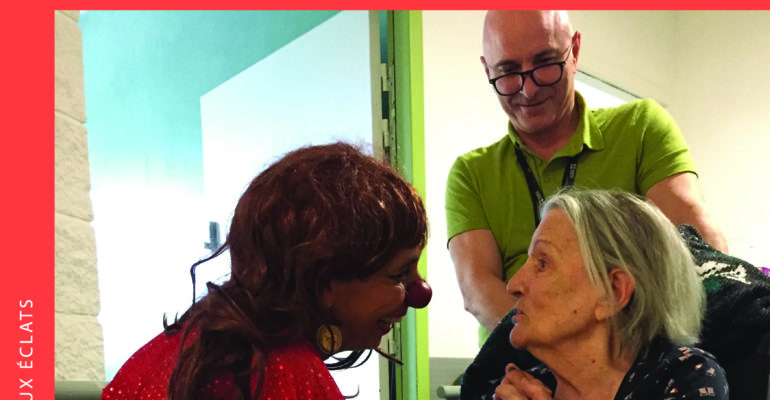 En 2024, ce sont plus de 16 000 enfants, adolescents, personnes âgées et personnes en situation de handicap, mais aussi soignants, proches et aidants qui bénéficient de nos programmes artistiques dans 15 établissements de soins ; des programmes innovants et adaptés à chacune des personnes rencontrées. Nous poursuivons notamment notre travail autour du langage non verbal. Après l'exploration du langage corporel, c'est le langage sonore qui devient outil relationnel. S'appuyant sur une variété d'instruments et de techniques sonores, les clowns de VIVRE AUX ECLATS proposent ainsi d’autres manières d'entrer en relation avec les personnes atteintes de troubles cognitifs ou en situation de handicap et s'attachent encore et toujours à prendre part à leur prise en soins non médicamenteuse.